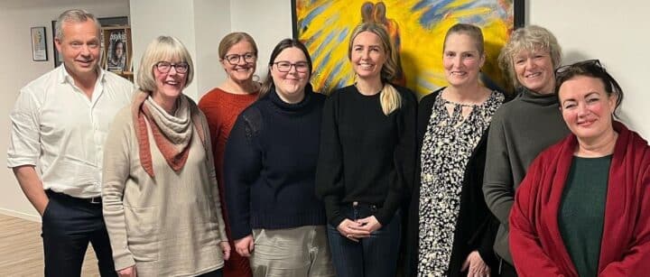 Styret i Rådet for psykisk helse (2023 – 2025). Fra venstre: Stig Bech, Anne Grethe Erlandsen (leder), Kathinka Meirik, Martine Antonsen (nestleder), Hanne Skarsvaag, Charlotte Elvedal (ansattes representant), Marit By Rise og Gry Veronica Engli. Audun Haga var ikke til stede da bildet ble tatt.