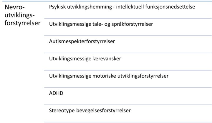 Tabell 1. Nevroutviklingsforstyrrelsene.